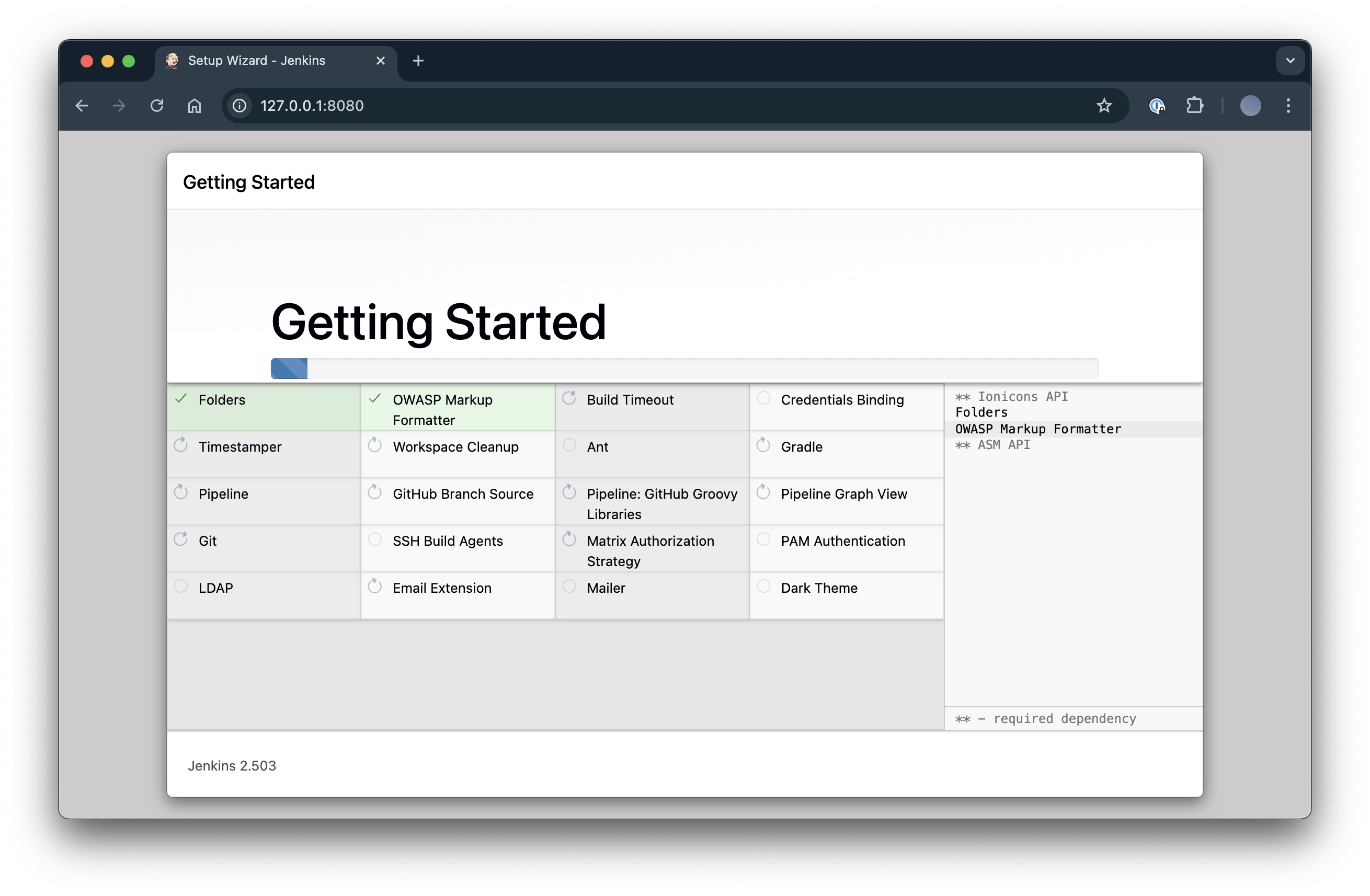 초기 추천하는 Plugin을 설치하면서 Jenkins 구축은 완료됩니다.