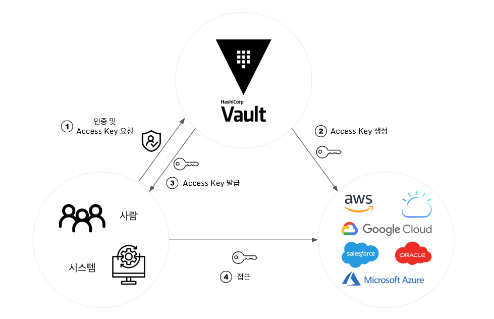 외부 서비스용 API Key나 통신을 위한 자격 증명 등은 플랫폼마다 분산되어 있어, 누가 어떤 시크릿에 접근했는지 파악하기 어렵습니다. 이럴 때 HashiCorp Vault를 활용하면 키 회전(Key Rotation), 감사 로그(Audit Logging) 등의 기능을 통해 secret을 중앙에서 안전하게 관리할 수 있습니다.