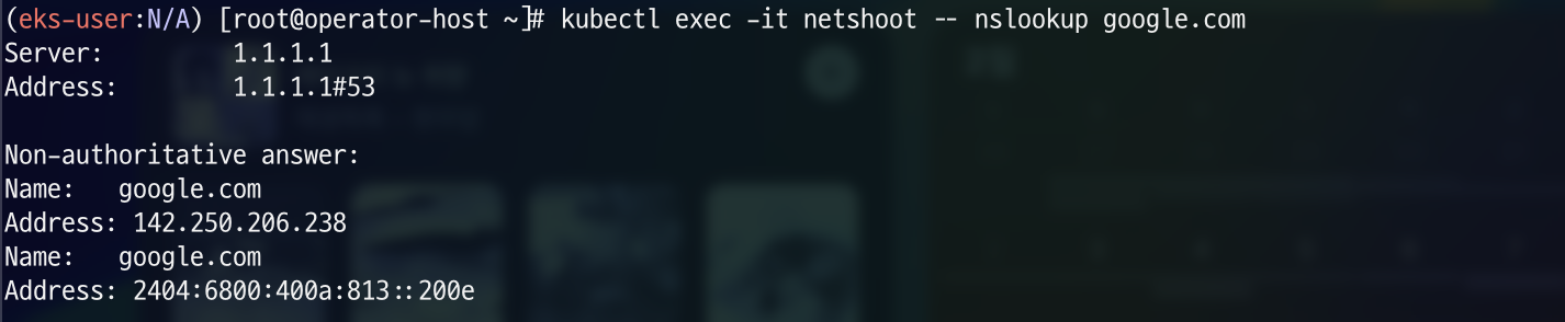 netshoot pod의 DNS설정을 확인해보겠습니다.