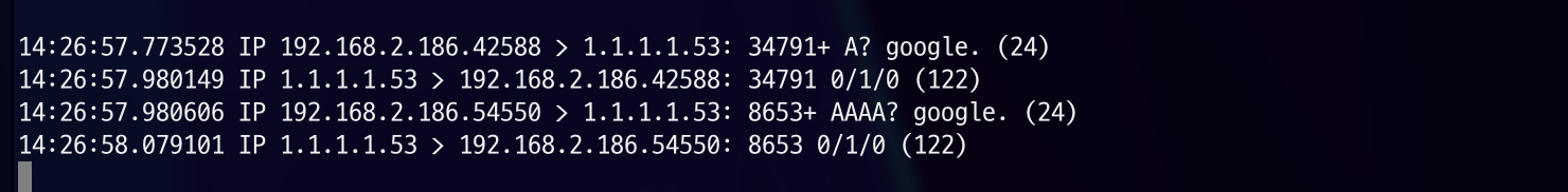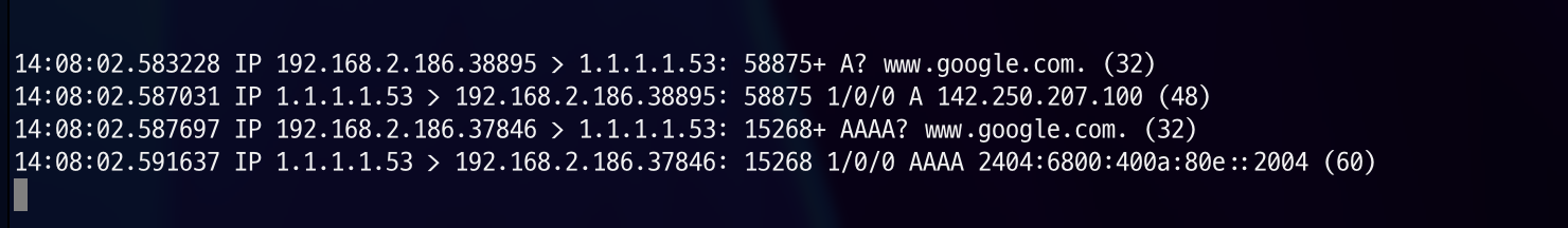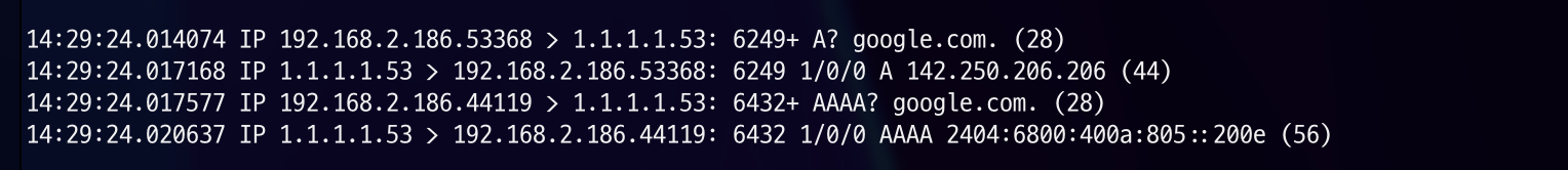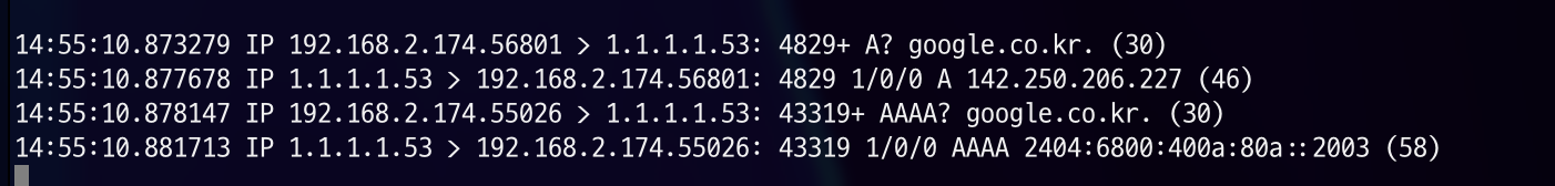 dump를 확인해보면 goole.com 에서 . 의 수가 ndots(1)과 같아 FQDN으로 간주하여 바로 질의하게 된 것을 확인하실 수 있습니다.