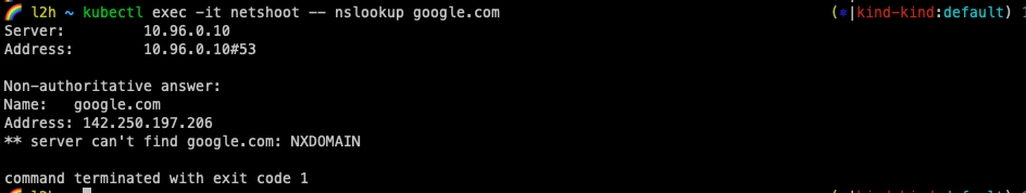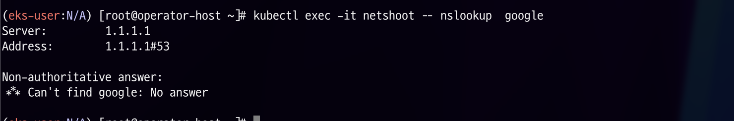 1. google.default.svc.cluster.local. -> 질의 실패