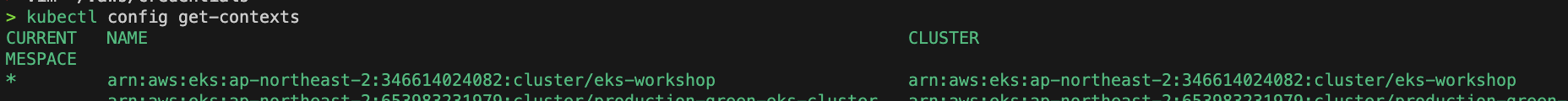 aws cli 명령어로 EKS의 configure를 kube-config에 등록합니다.