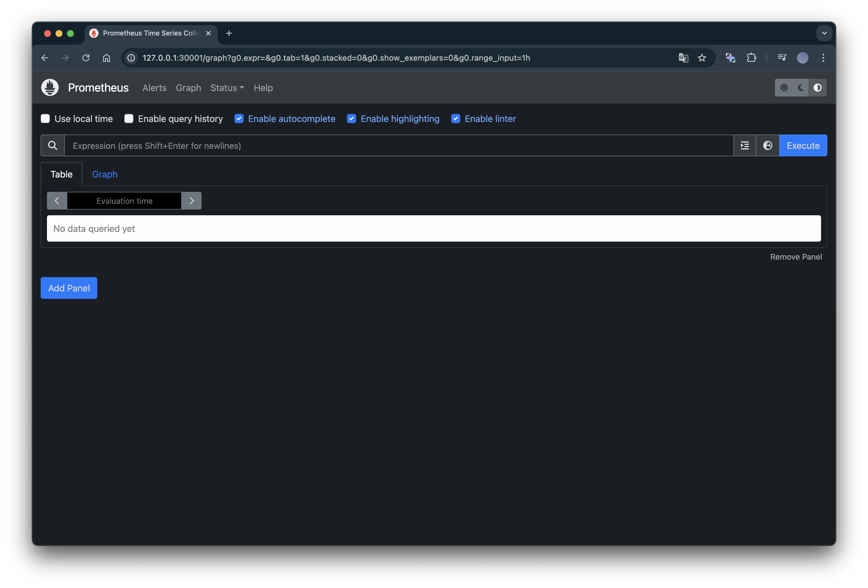 open "http://127.0.0.1:30001" # prometheus