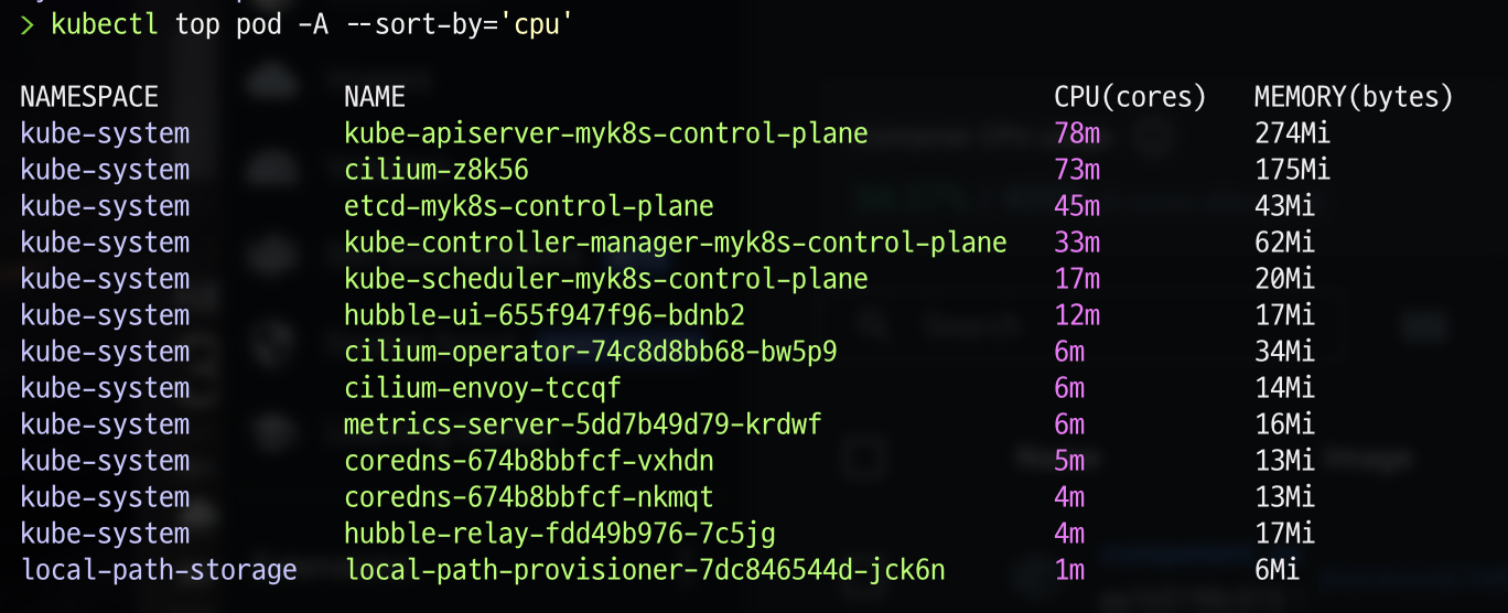 kubectl top pod -A --sort-by='cpu'