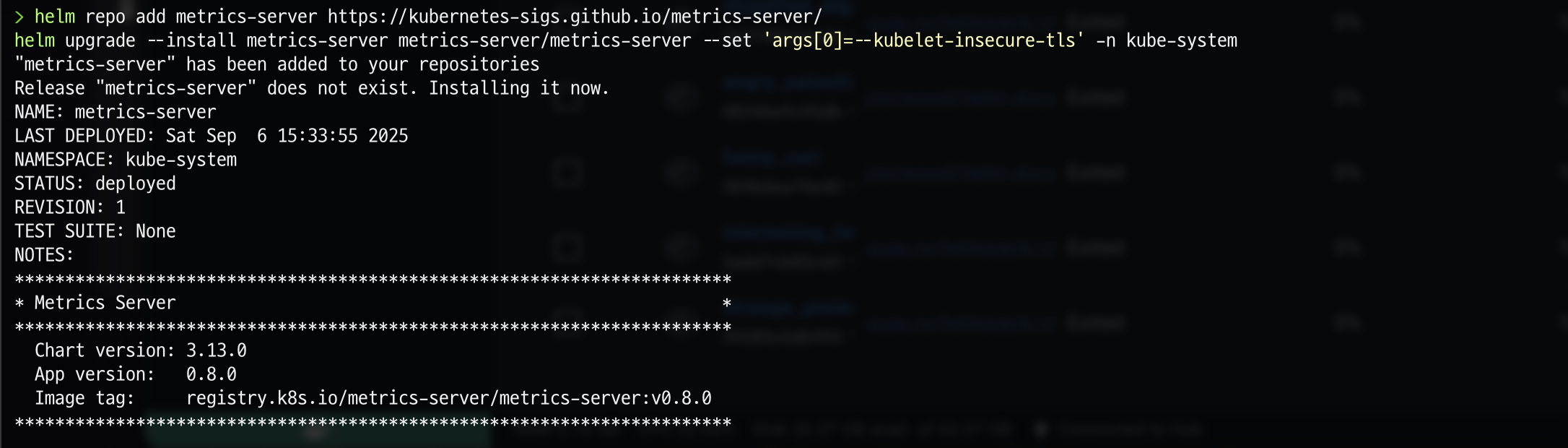 helm repo add metrics-server https://kubernetes-sigs.github.io/metrics-server/