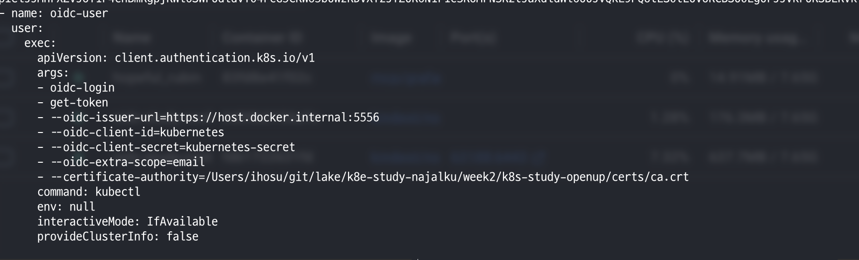 위 옵션은 로그인할 OIDC 서버 주소를 의미합니다. 여기서는 Dex의 port를 명시하여 실행합니다.