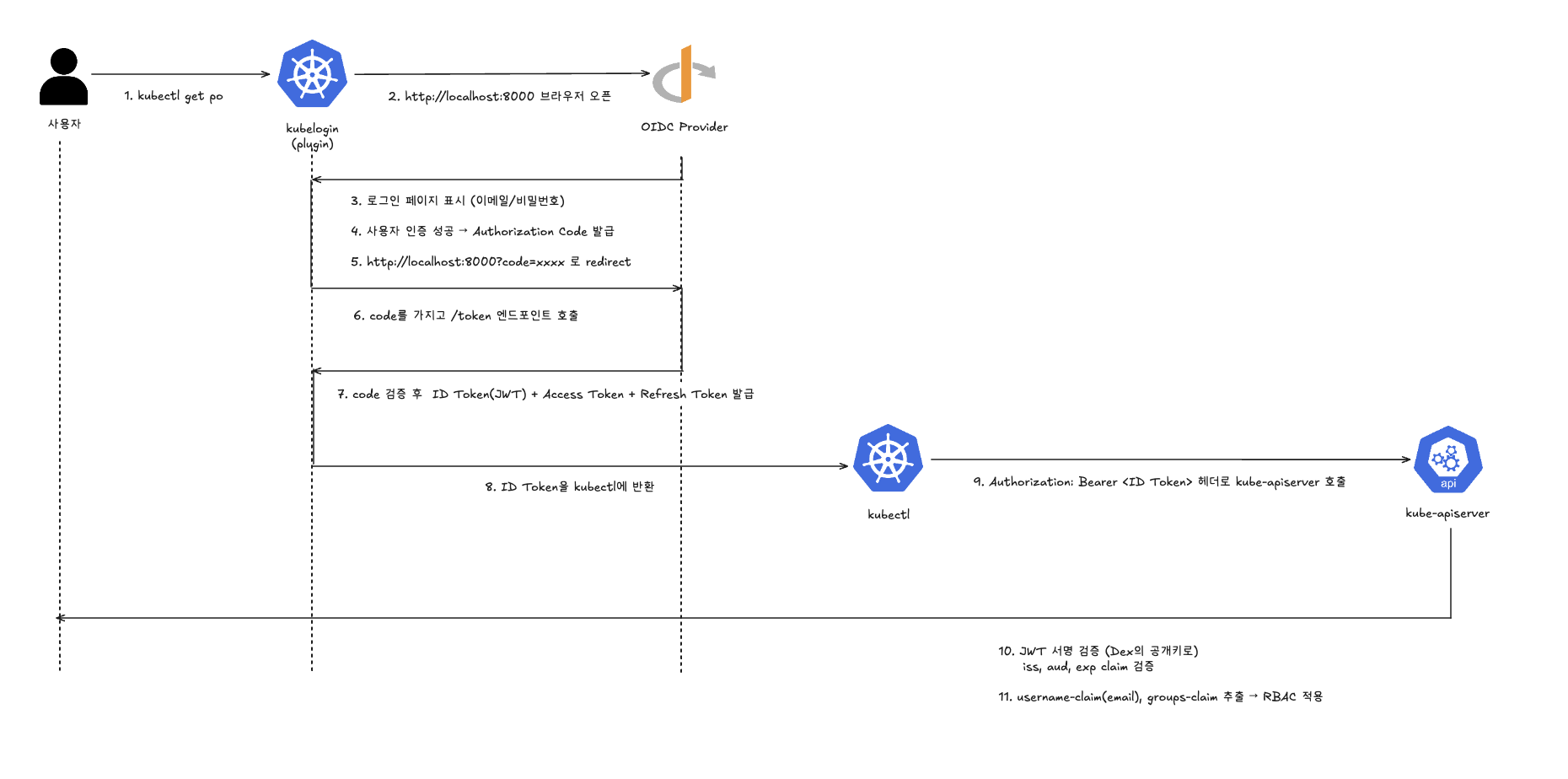 3. kubectl oidc-login이 그 코드를 받아 토큰으로 교환